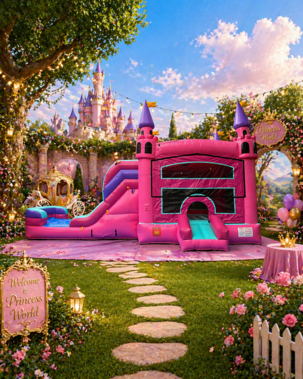 PINK PRINCESS CASTLE BOUNCE HOUSE WITH SLIDE (WET/DRY)